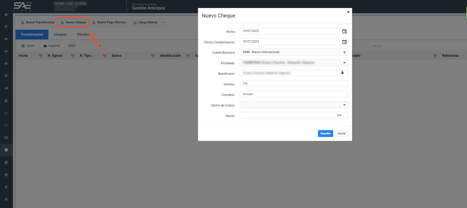 Nuevo Cheque.- Llena los datos que solicita el sistema:
