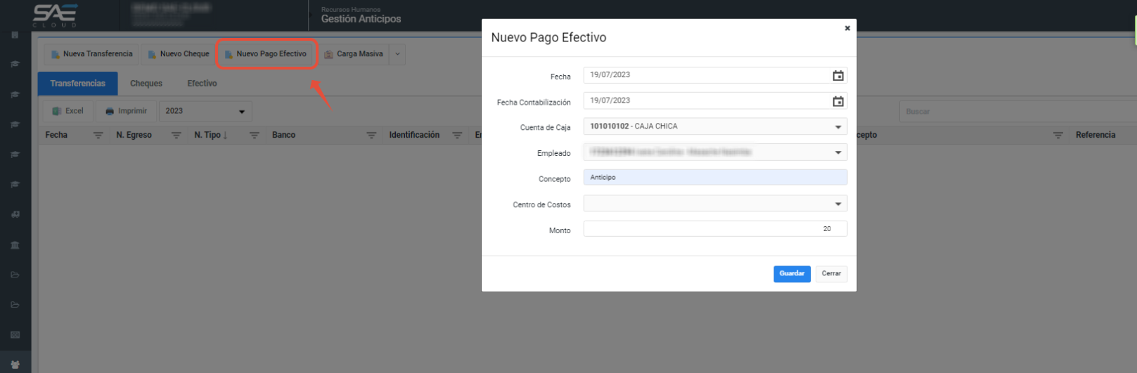 Paso 1: Ingresar al Módulo Recursos Humanos-> Menú Gestión de Anticipos